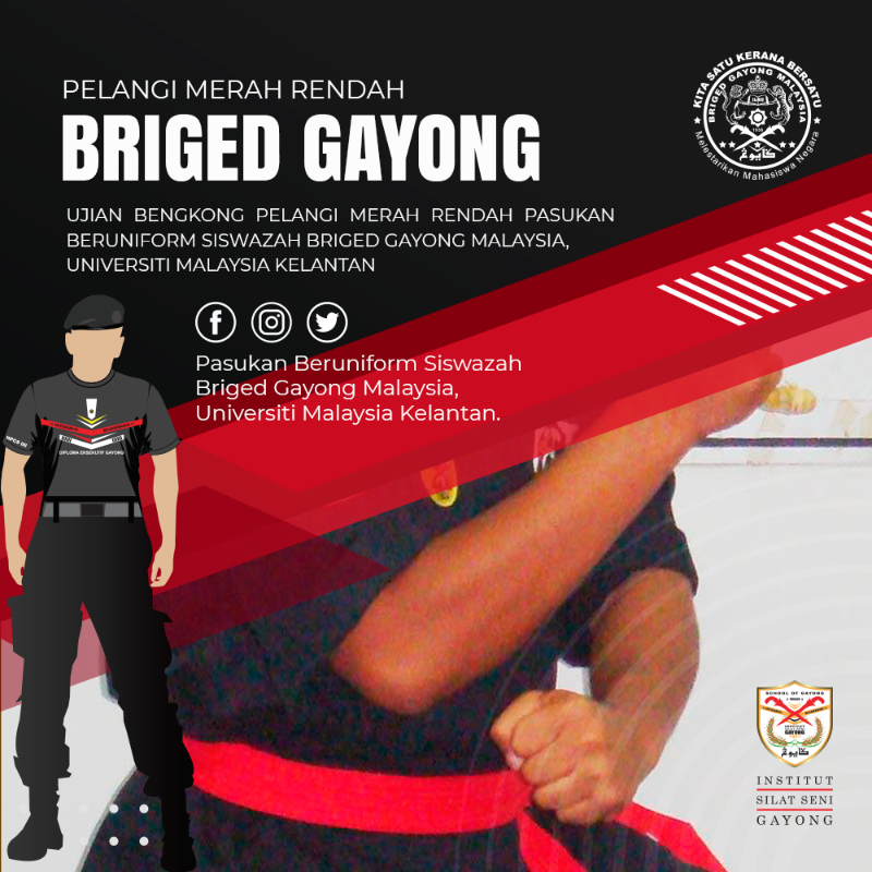 Ujian Kenaikan Bengkong Pra Pelangi Merah dijalankan untuk menilai prestasi para pesilat (Pegawai Kadet Kanan BGM) yang telah tamat sekurang-kurangnya 300 jam latihan Briged Gayong mengikut peringkat Lencana Pra Pelangi Merah Pasukan Beruniform Siswazah Briged Gayong Malaysia (BGM) Institut Pengajian Tinggi (IPT).