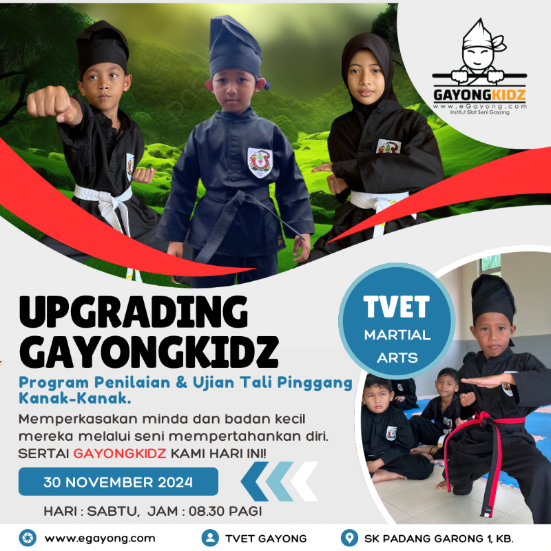 Adakah anak anda sudah bersedia melangkah ke tahap seterusnya? Ujian Kenaikan Tali Pinggang GayongKidz bukan sekadar satu tradisi dalam seni beladiri, tetapi satu proses penting yang melatih anak-anak untuk menjadi individu yang lebih berkeyakinan, berdisiplin, dan berwawasan!